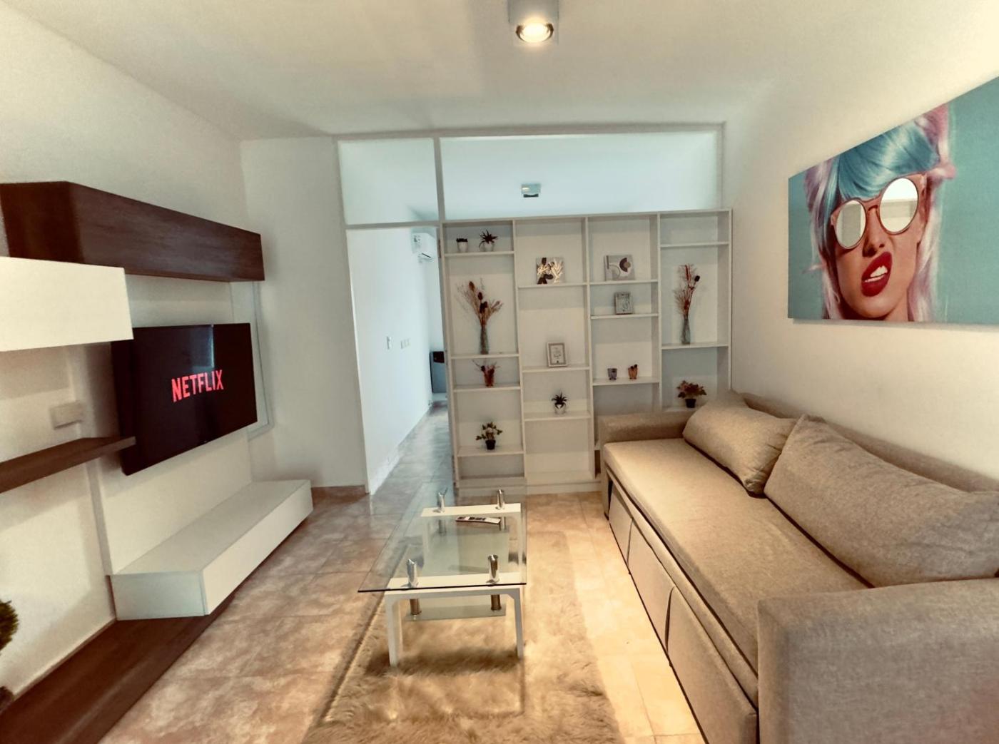 Apartamento de 1 dormitorio. This air-conditioned apartment is comprised of 1 living room, 1 separate bedroom and 1 bathroom with a bath. Meals can be prepared in the kitchen, which comes with a stovetop, a refrigerator, kitchenware and an oven. Featuring a terrace with city views, this apartment also offers soundproof walls and a flat-screen TV with streaming services. The unit offers 2 beds. ;